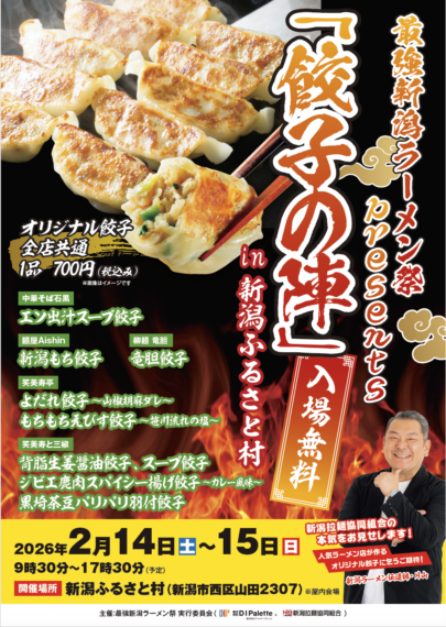 2月14日(土)・15日(日)の2日間、新潟ふるさと村を舞台に、最強新潟ラーメン祭 presents 餃子の陣が開催されます。