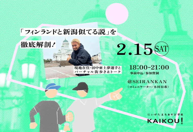 〈第13回〉にいがたまちあそび学校KAIKOU!at SEIRANKAN 「フィンランドと新潟、似てる説」を徹底解剖! 現地在住・田中亜土夢選手とバーチャル街歩き&トーク
