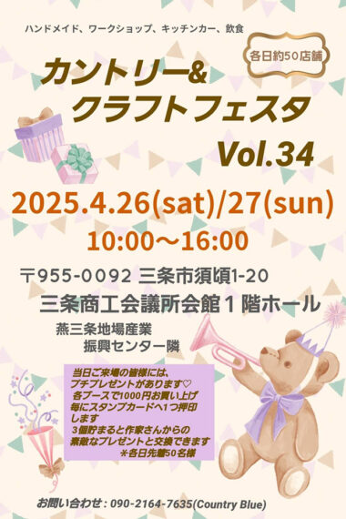 4月26日(土)・27日(日)に開催される『カントリー&クラフトフェスタ Vol.34』。