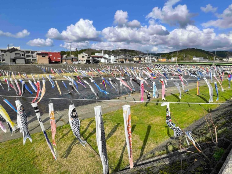 栄光の架け橋ーーー!! 人よ鯉(来い) ! という地元の方の思いが今では春の風物詩に。