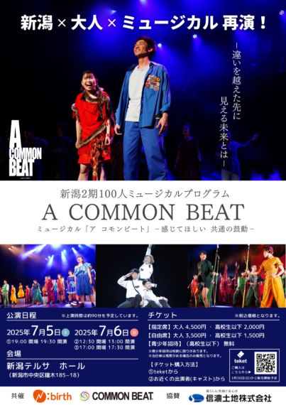 舞台表現を通じて多様な価値観を認め合い、ウェルビーイングな世界を目指すNPO法人コモンビートと、新潟を盛り上げ子供たちのための未来を守る活動を行なうN:birth (エヌバース)による注目のミュージカルが、7月5日(土)・6日(日)に新潟テルサにて上演されます。