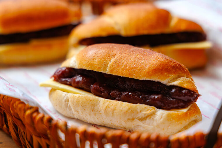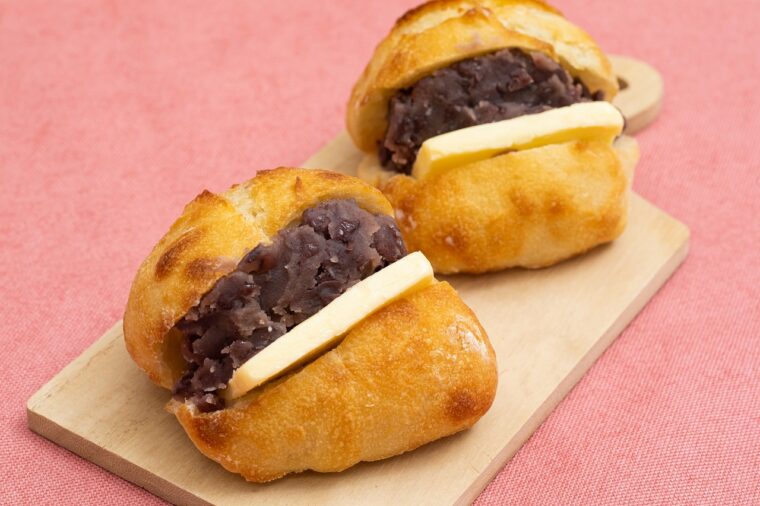 県産小麦の全粒粉を使用した生地の上にフランス産ゲランドの塩をのせて焼き上げた塩パンに、新潟市の老舗和菓子店・さわ山の粒あんとフレッシュ有塩バターをサンド。