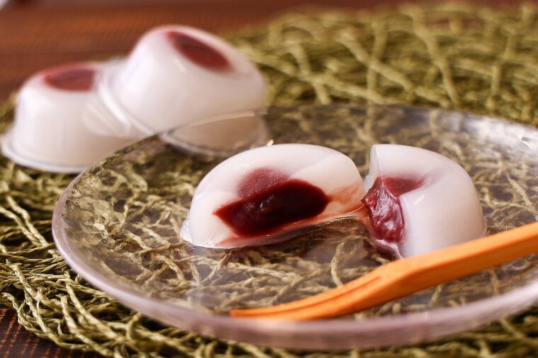 三条市下田の天然水『千年悠水』の透明感あるおいしさをいかした水まんじゅう。