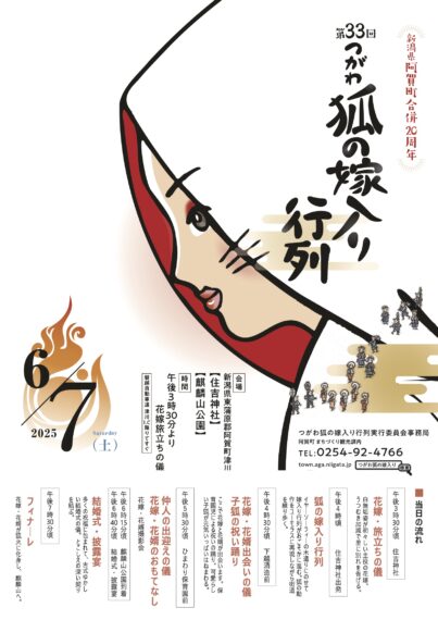 - つがわ狐の嫁入り行列実行委員会事務局(阿賀町役場まちづくり観光課内)