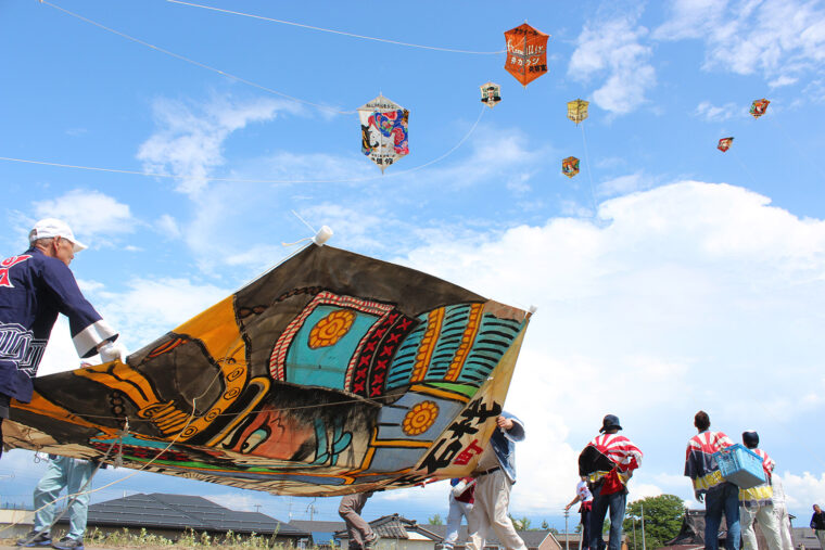 6月7日(土)~9日(月)に刈谷田川堤防上で開催され、六角大凧が勇壮な空中戦を繰り広げます。