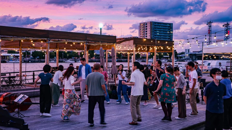 普段は佐渡に行く船に乗るためのターミナルビルですが、この日だけは建物全体がおまつり会場。この日限定で屋上も開放されるのでビール片手に沈む夕日を楽しんだり、みんなで佐渡おけさを踊ったりできますよ。初夏の夕暮れに、佐渡からの風に吹かれながら気持ちのいい時間を過ごせる注目のイベントです。
