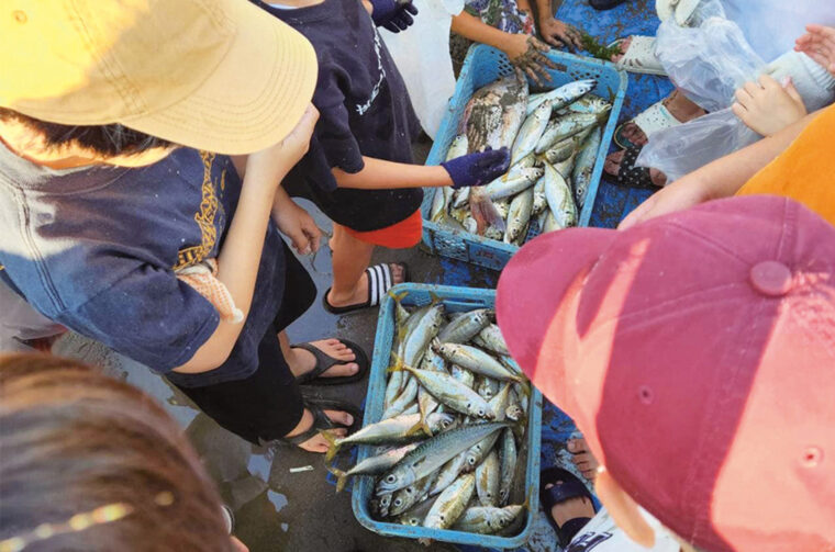 網にかかった魚の観察を通して、海の現状や環境問題を知ることができ、子どもたちにとっていい食育体験にもなります。