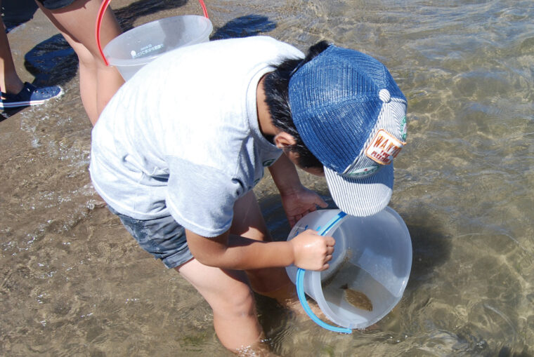 水産資源を増やすために行なう稚魚の放流を体験できます。