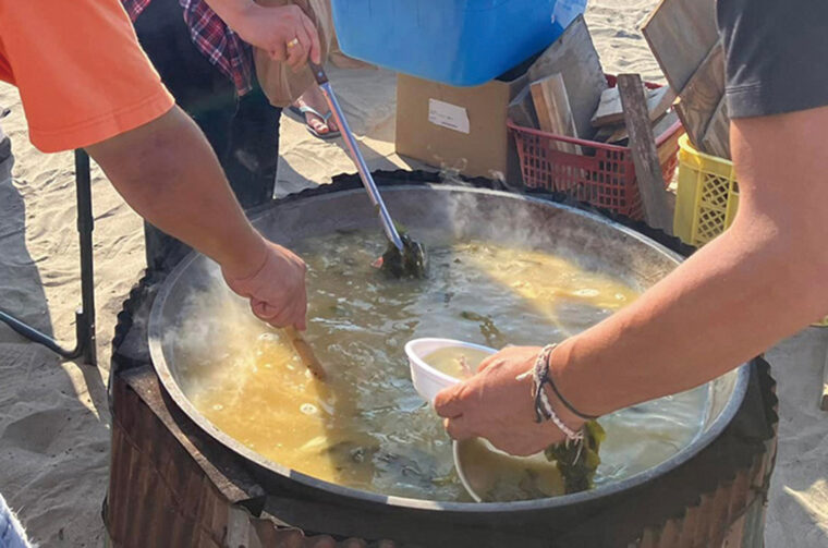 魚介類を豪快に煮込んで作る、魚介のうまみをたっぷり味わえる味噌汁を振る舞います。