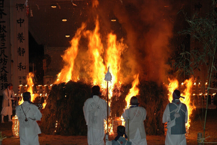 火災を防ぐ火伏せの神として全国に信者を持つ秋葉三尺坊大権現のお祭り『秋葉の火祭り』を、命日である7月24日(木)の19:00から秋葉公園で行ないます。