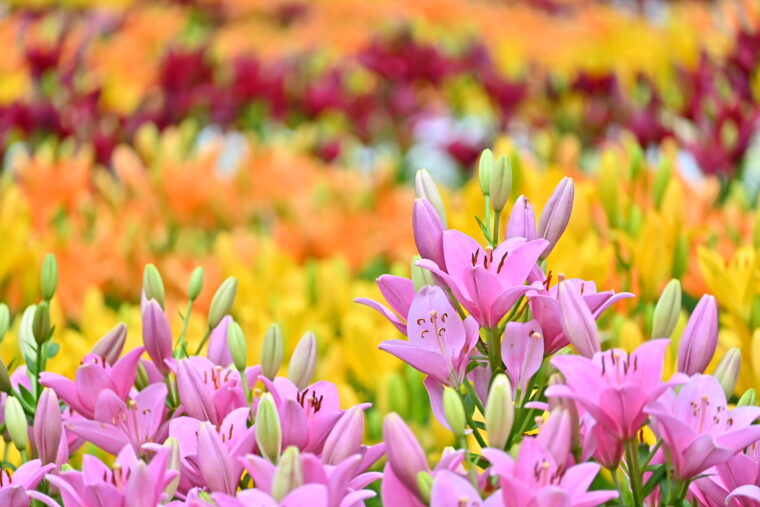 色鮮やかな1万本のユリが咲き誇る景色はとてもきれいですよ。