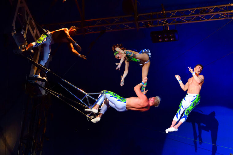 世界で活躍する10ヵ国以上のトップパフォーマーが集結し、テント内を華麗に舞う空中ブランコや、難易度の高いコンビネーションジャグリングなど、超人的な肉体と技を駆使した迫力満点のパフォーマンスを披露します。