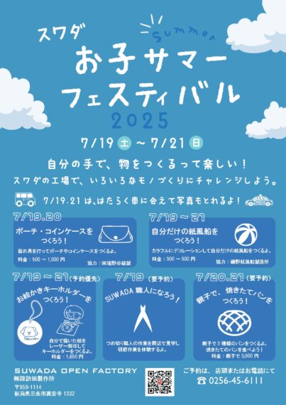 三条市の爪切りメーカー・SUWADA OPEN FACTORYで7月19日(土)~21日(祝)に『お子サマーフェスティバル』が開催されます。