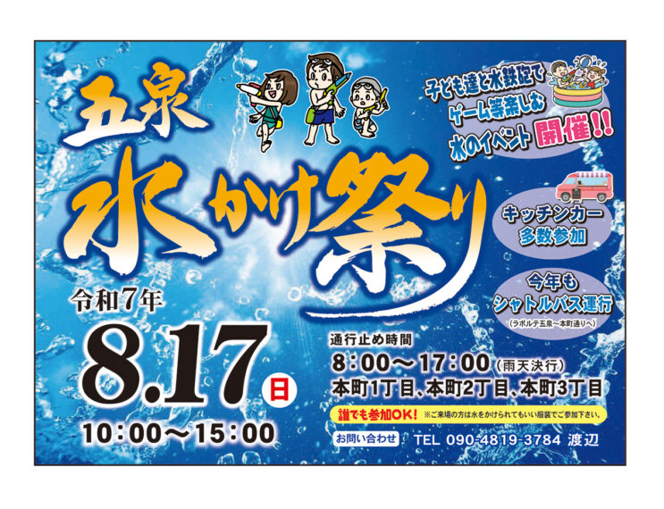8月17日(日)10~15時、五泉市本町1~3丁目を会場に「五泉水かけ祭り」が開催されます。