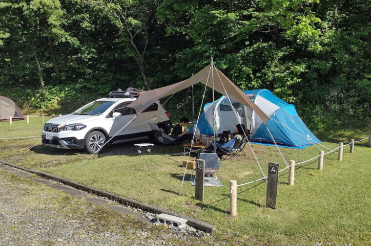 テントのそばに車を止めることができ、荷物の出し入れなどが便利です。