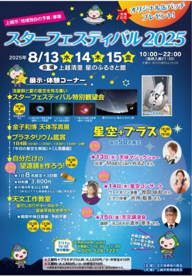 8月13日(水)~15日(金)の3日間にわたり、上越清里星のふるさと館で『スターフェスティバル』が開催されます。