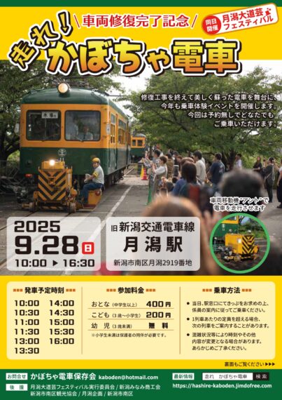 「かぼちゃ電車」の愛称で親しまれている電車を走らせるイベントが、旧月潟駅で9月28日(日)に行なわれます。