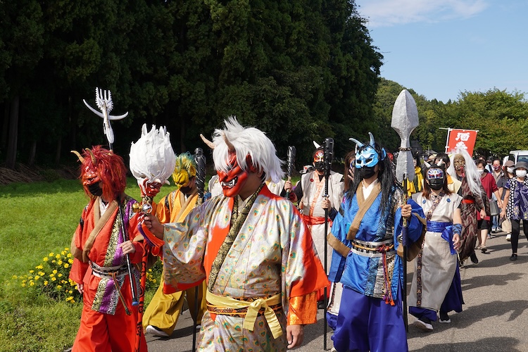伝説の鬼・酒吞童子(しゅてんどうじ)率いる鬼軍団が心願成就を祈り、道の駅SORAIRO国上周辺を練り歩きます。