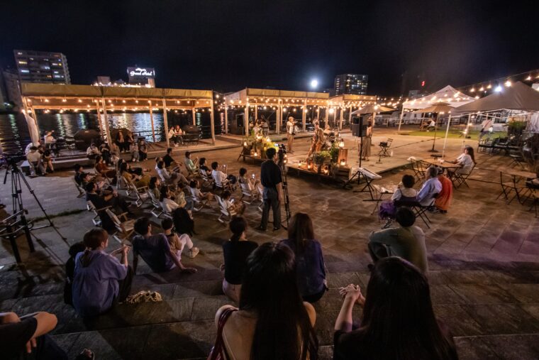 萬代橋と夕日が沈む信濃川の景色とともに、音楽やフードをたくさんの方に楽しんでもらいたいという気持ちから、学生自ら出演アーティストやキッチンカーなどをブッキング。夏の終わりに心地よい素敵な空間を作り上げます。