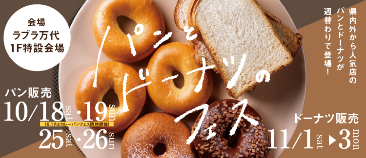 大盛況だった先回に続き、ラブラ万代を会場に、県内外の人気店のパンとドーナツが一堂に集まります。