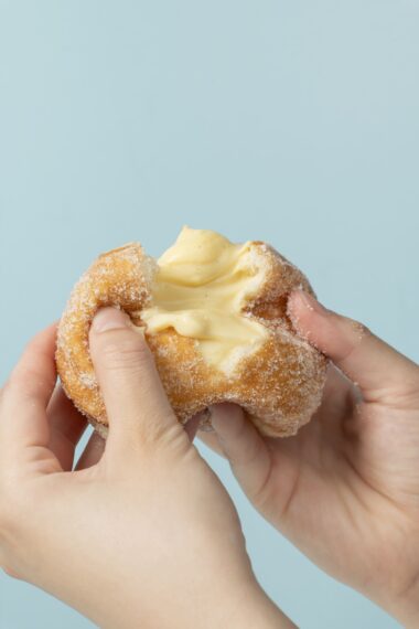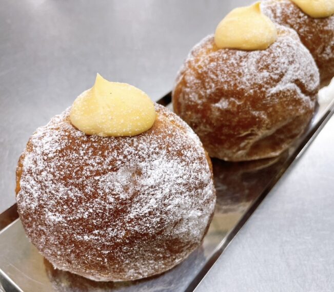 ふわふわしっとり軽い食感の生地の中には、季節のフルーツを使用したジャムや自家製カスタードなどのフィリングがたっぷり!