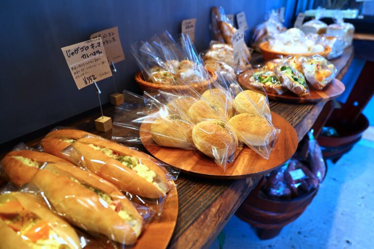 香ばしい香りに包まれた店内には、地元食材を使った多彩なパンが並びます。