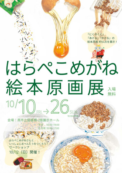 10月12日(日)10:00〜、先着50名ではらぺこめがね本人が登場するワークショップも実施!絵本の販売やサイン会もありますよ。