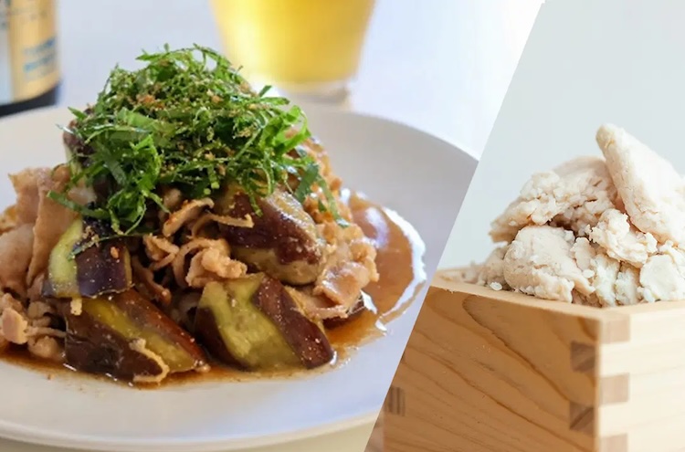 旬のナスと豚肉を使い、酒粕を加えてコク深く仕上げる『酒粕照り焼き』を作ります。