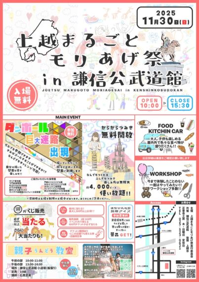 11月30日(日)に、上越市の謙信公武道館で親子で楽しめるイベントが開催されます。