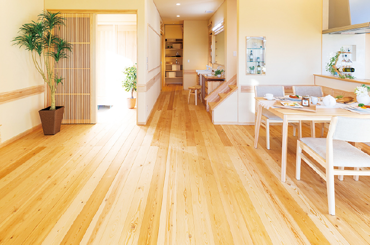 目玉は、ヒノキの床材1棟分、100万円相当のプレゼント企画。期間中、下記のモデルハウス4会場にて、抽選で各会場5名に当たるチャンス!