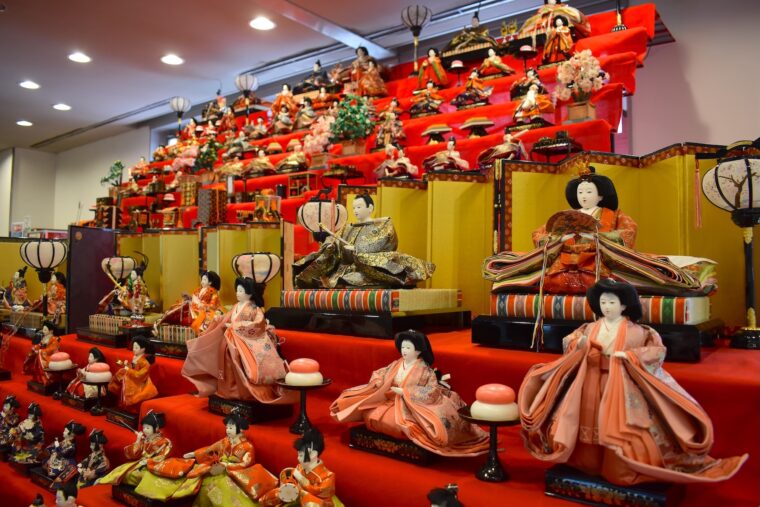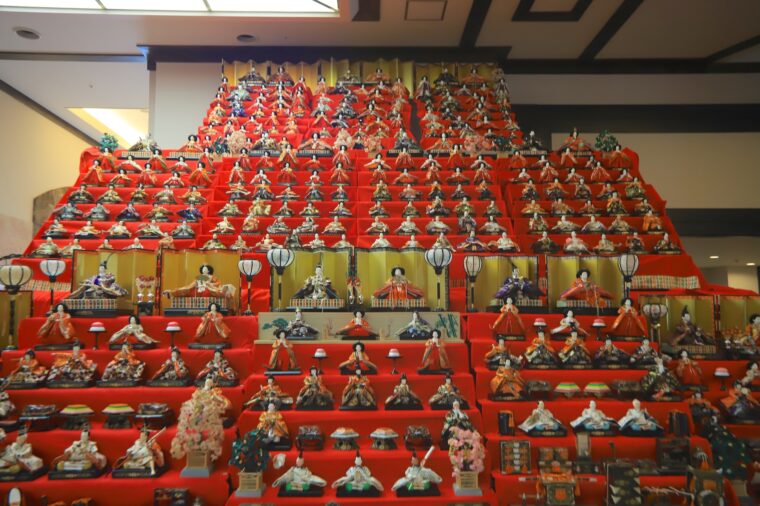 子どもの成長を見守り役目を終えたひな人形が再び華やかに輝き、天井まで届く段飾りは壮観です。