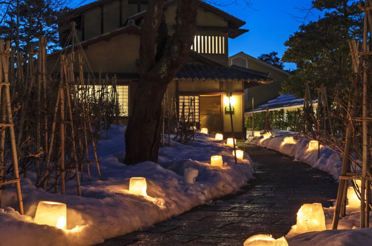 当日はみんなで一緒に庭園で雪灯籠を作り、あかりを灯しながら古径の誕生日を祝います。冬の静けさに包まれた庭園に浮かぶあたたかな光が特別なひとときを演出します。