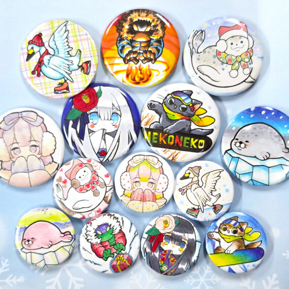 新潟市マンガの家で通年開催中の缶バッジ作りに、冬をテーマにした塗り絵素材が3月22日(日)まで登場しています。