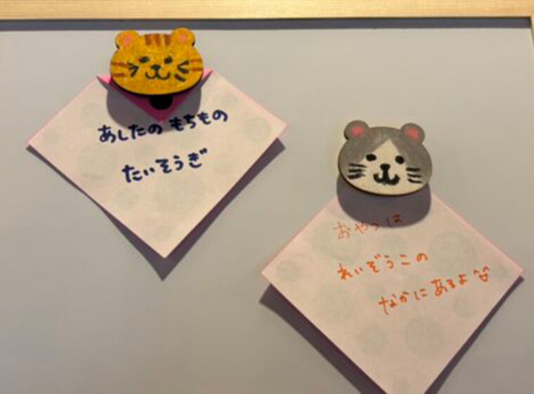 猫型の木製の土台に色を塗り、オリジナル模様のかわいいマグネットを作りましょう!