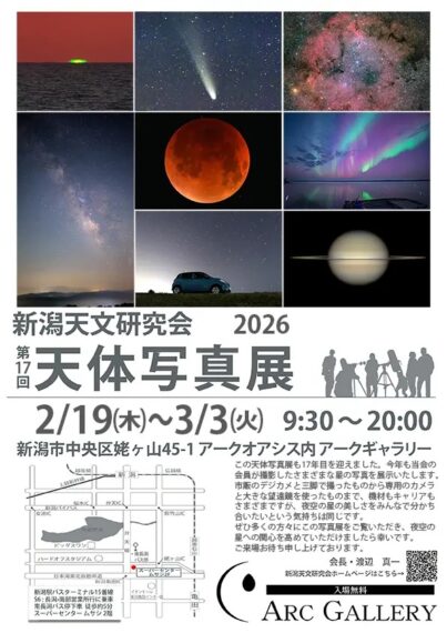 新潟天文研究会が毎年行なっている天体写真展が、今年もスーパーセンタームサシ新潟店の2F・アークオアシス内にあるアークギャラリーで行なわれています。