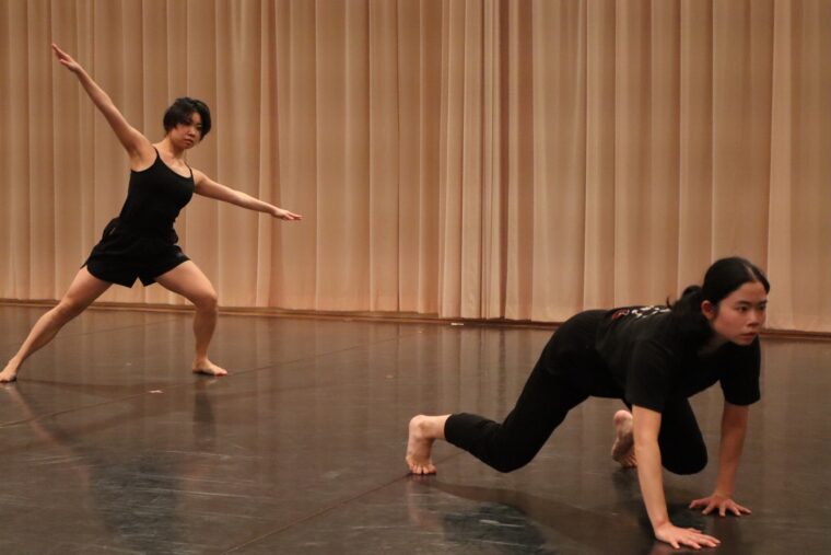 会場に入ると、平尾玲さん、大﨑健太郎さんの男女ペアが振りの確認をしていました。