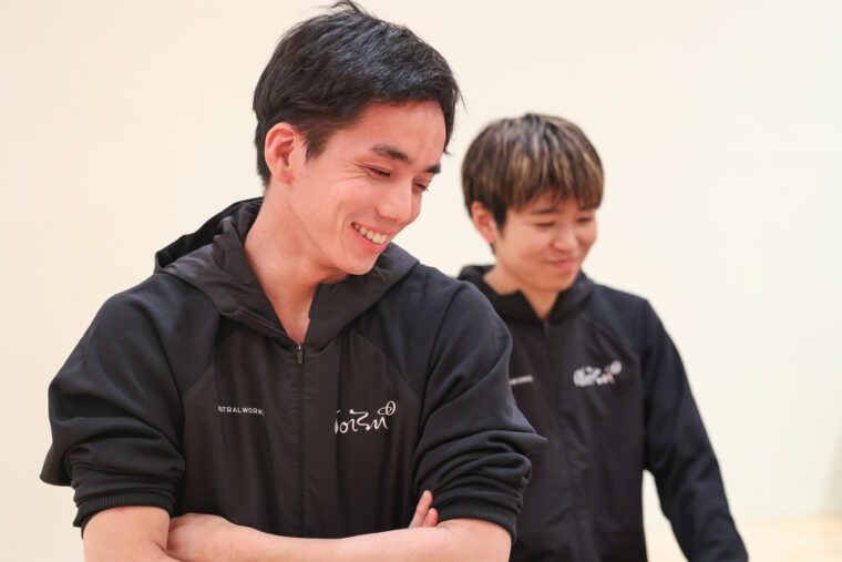 坪田:僕はデュオで作品を創るのが今回初めてです。大人数とデュオでは、使う頭が全然違う感じですね。大人数の方が空間で見せやすい気がします。デュオでの作品作りは、勇気さんから「ふたりで空間をどう扱うか」ということを課題として突きつけられているんだろうなと。大人数のなかのふたりの振りをつけることはできるけど、デュオの場合はふたりでしかない。難しいです。