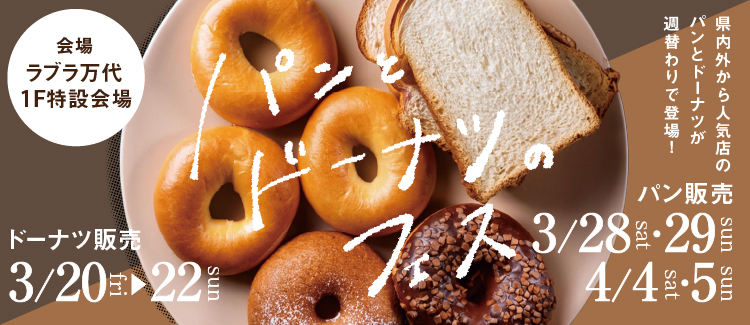 先回に続き、ラブラ万代を会場に、県内外の人気店のパンとドーナツが一堂に集まります。
