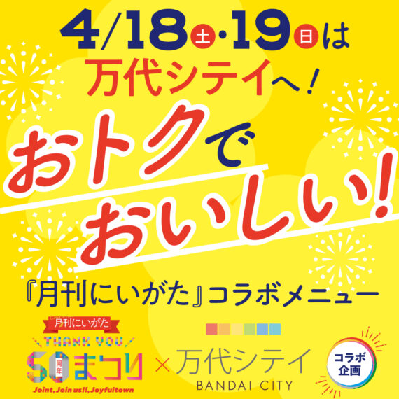 創刊50年を迎えたタウン情報誌『月刊にいがた』が、4月18日(土)・19日(日)、万代シテイパークを会場に『Thank you!月刊にいがた50周年まつり』を開催します。