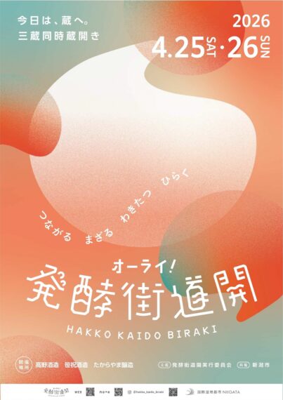 街道沿いにある3つの酒蔵の蔵開きイベントを中心に、地域をめぐりながら、さまざまな発酵文化や企画を楽しみ、地域の人々と出会い、語らい、交流することを楽しむイベント『オーライ、発酵街道開(はっこうかいどうびらき)2026春』が4月25日(土)・26日(日)に開催されます。