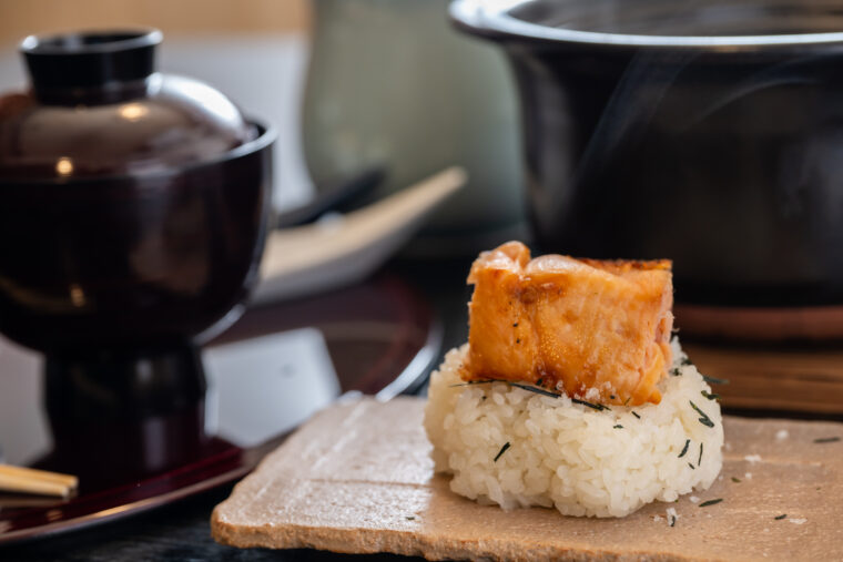 『共創おにぎり』『村上茶飯と塩引鮭の粗ほぐし混ぜご飯』/ノリケラトプス研究所