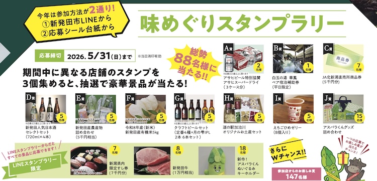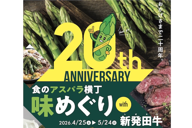 そんな特産品のアスパラガス&新発田牛(しばたうし)が主役の「食のアスパラ横丁、味めぐり」が令和8年4月25日(土)~5月24日(日)に開催されます。