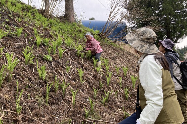 大地の芸術祭の施設、うぶすなの家がある十日町市東下組集落で、地元のお母さんたちと一緒に山菜採りを体験!