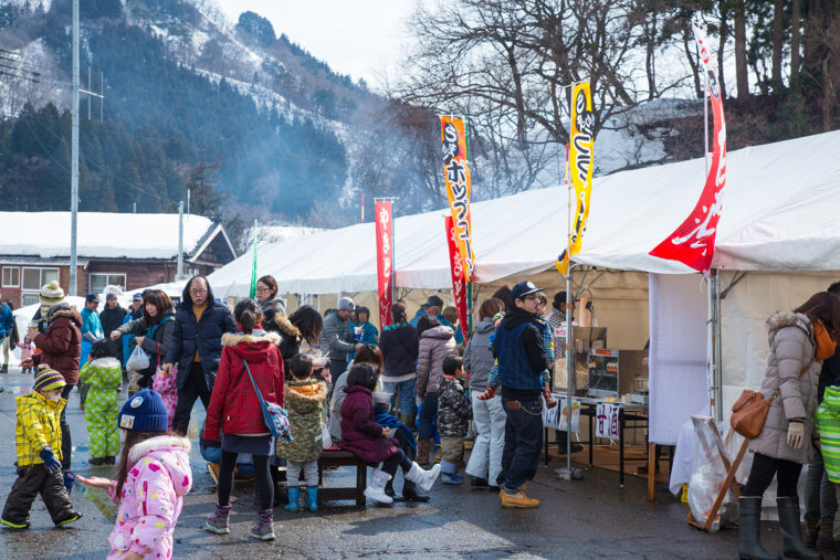 雪の遊び場やステージショー、温かい食べ物を販売する『じょんのびのれん街』など、地元色あふれるお祭りです。