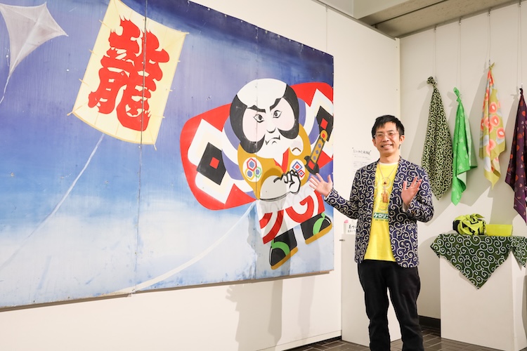 背景にある凧の絵は、ある銭湯で実際に浴室を飾っていたもの。