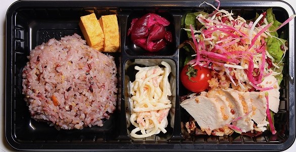 女性におすすめ! 十六穀ごはん+蒸し鶏のキヌアミックスサラダ 『ヘルシー弁当』※はるさめスープ付き 550円(税込)