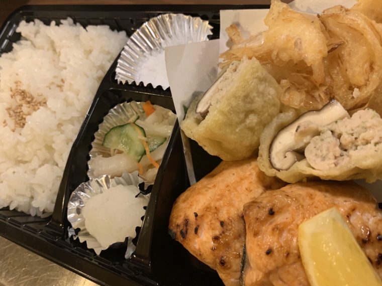厳選した焼き魚と旬の素材の天ぷらが美味! 『焼き魚天ぷら弁当』 600円(税込)