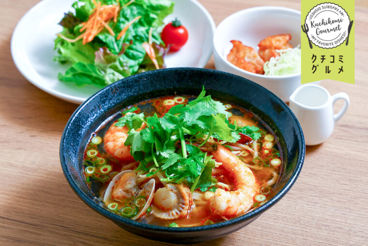 アサリ、ホタテ、エビのうまみと、酸味や辛みのバランスが絶妙な『トムヤムクンのフォー』は女性に大人気のメニュー。
