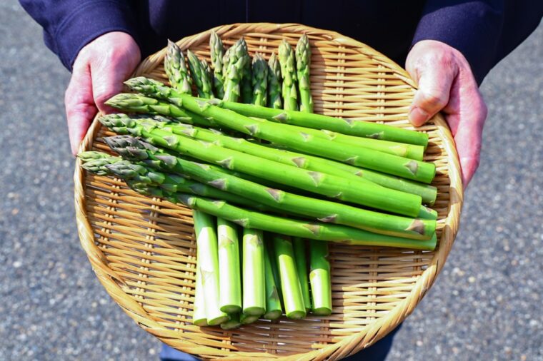 今まさに旬を迎えているアスパラガスは、鮮やかな緑色と立派な太さが特徴です。新発田エリアでは、30年以上にわたりアスパラガスの栽培が続けられています。