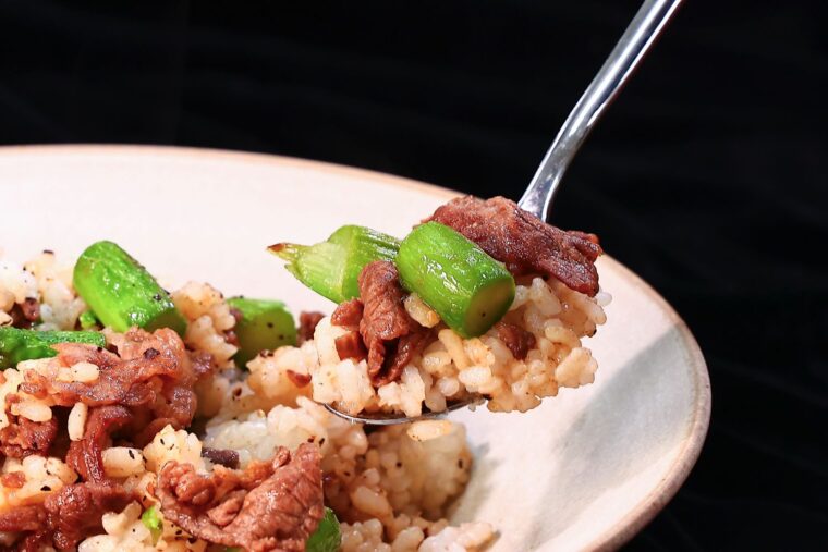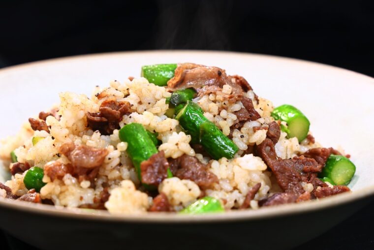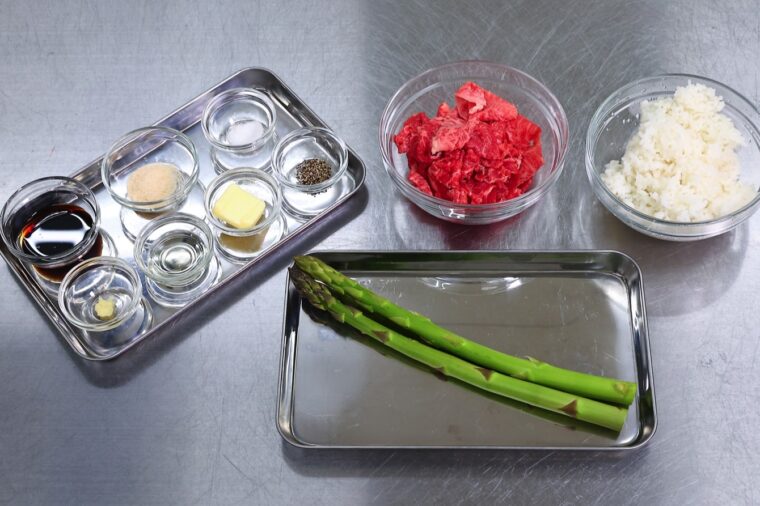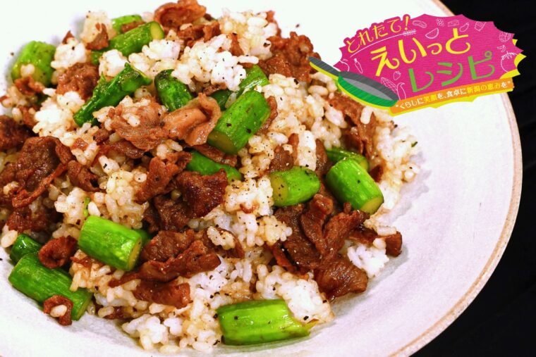 『アスパラガスと新発田牛のしょうゆバターご飯』